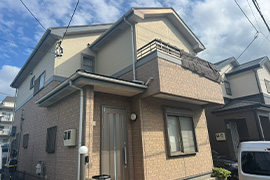 今回のポイントは、建物のフォルムを活かしたカラーリニューアルです。これまでの外観から、ナチュラルなベージュへと一新することで、優しさと上質さを感じさせる外観に仕上げました。単なる塗り替えではなく、配色のバランスを工夫することで、住まいの立体感と調和のとれたデザイン性を引き立てています。