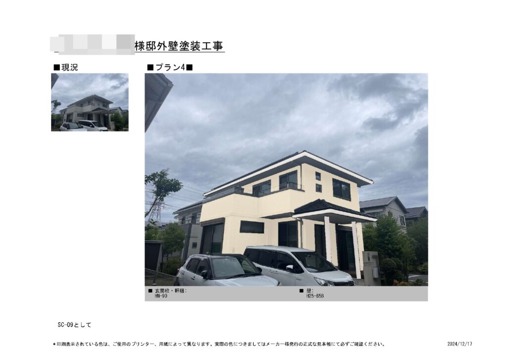 カラーシミュレーションは4パターンご提案させて頂きました。