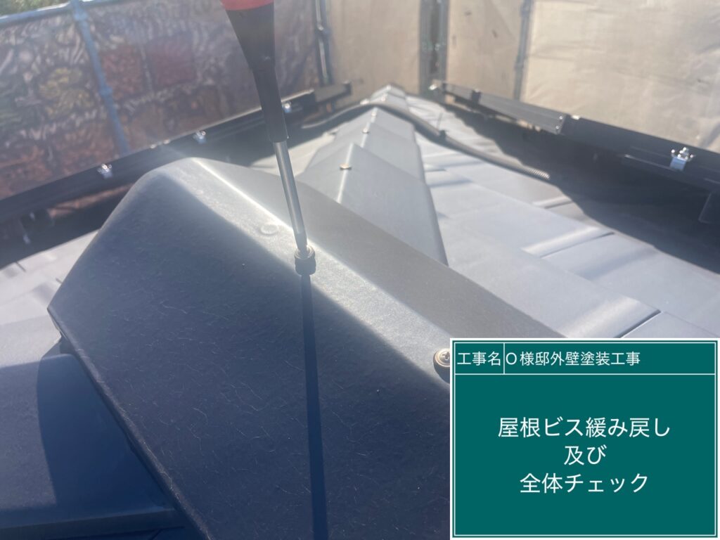 屋根瓦のビスの緩み戻しを行います。