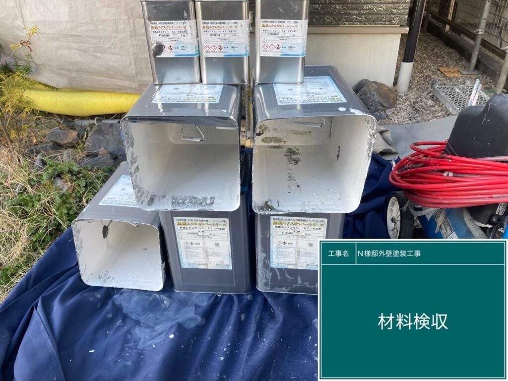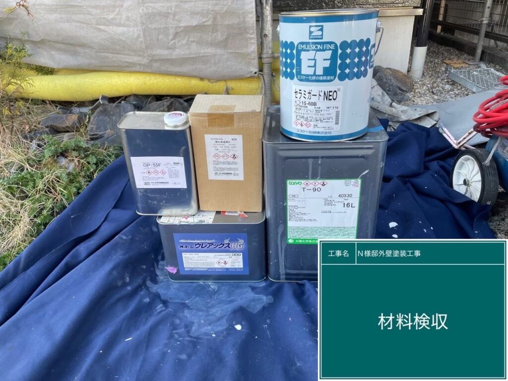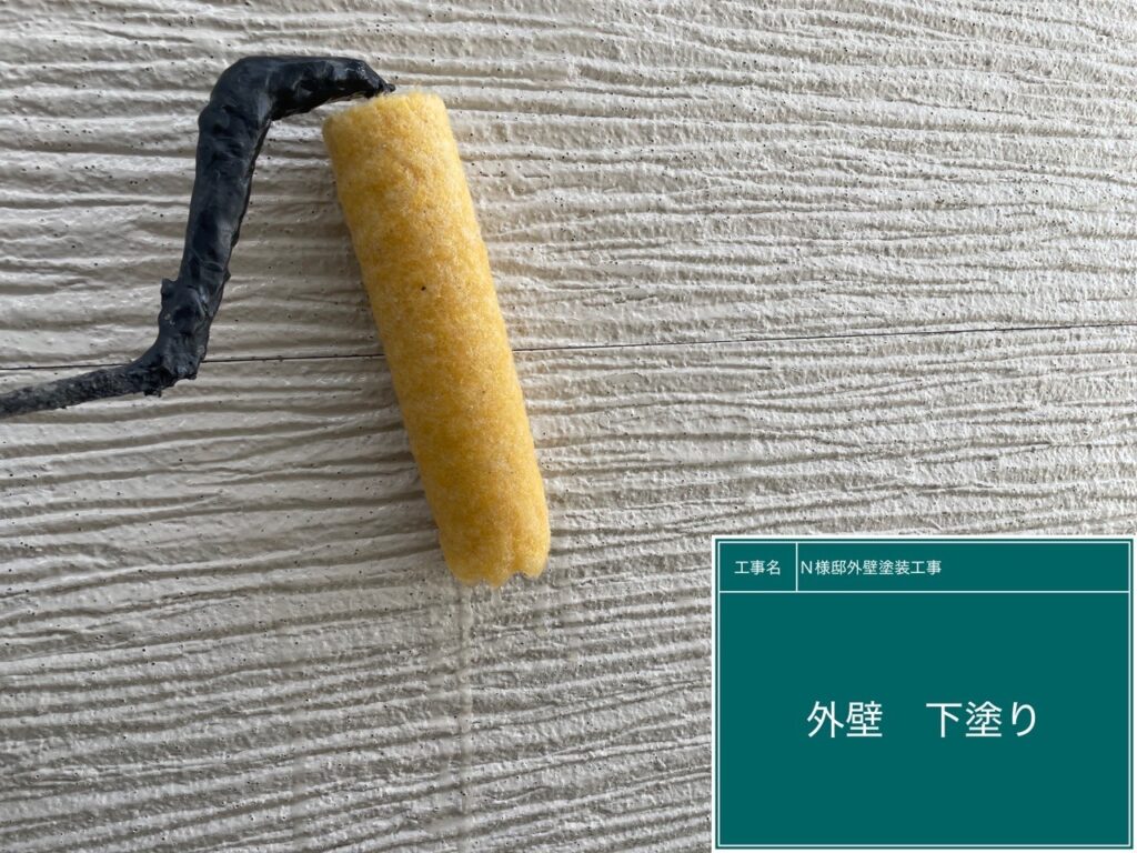 数ある塗装会社より弊社をお選びいただきありがとうございます。N様のお家は築15年、エサキホームさんのお家で、お家の状態と致しましては、窯業系サイディングボードの外壁で、経年劣化に伴う色あせが目立ちました。洗浄(下地調整)後、下塗りを施し主材塗料にて中塗り・上塗りを行います。目地のコーキングに関しましては、ひび割れが目立ちました。目地は撤去打替え工法にて、開口部やその他箇所は基本的に増打ち工法にて補修致します。ながもち君パックではオートンイクシードを標準仕様としています。ベランダ防水に関しましてはFRP防水が施されております。現状、浮き箇所や亀裂は無く良好な状態だと思われます。防水層を保護するトップコート工法にてご提案致します。