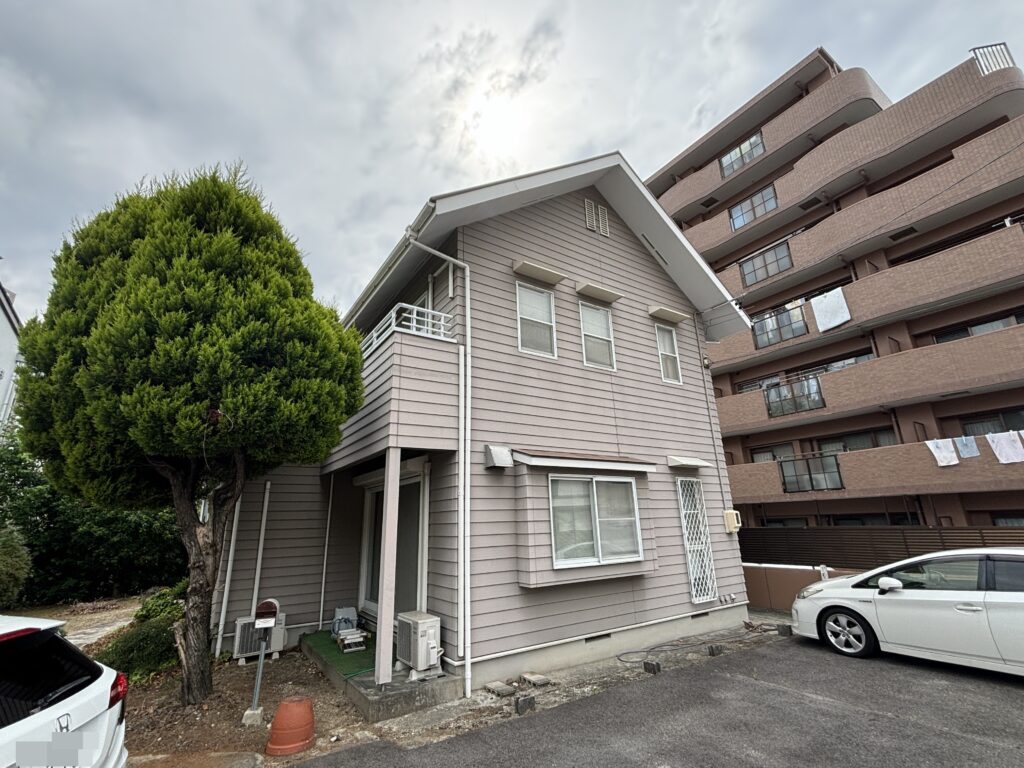 数ある塗装会社より弊社をお選びいただきありがとうございます。F様のお家は築30年、注文住宅のお家で、2回目の塗装となります。お家の状態と致しましては、経年劣化に伴う色あせが、外壁・木製ドア、樋などの付帯部に強く見られました。窯業系サイディングボードの外壁ですので、洗浄(下地調整)後、下塗りを施し主材塗料にて中塗り・上塗りを行います。特にバルコニー壁や西面の壁は日当たりが良く、膨張収縮がかなり激しく起こり続けております。