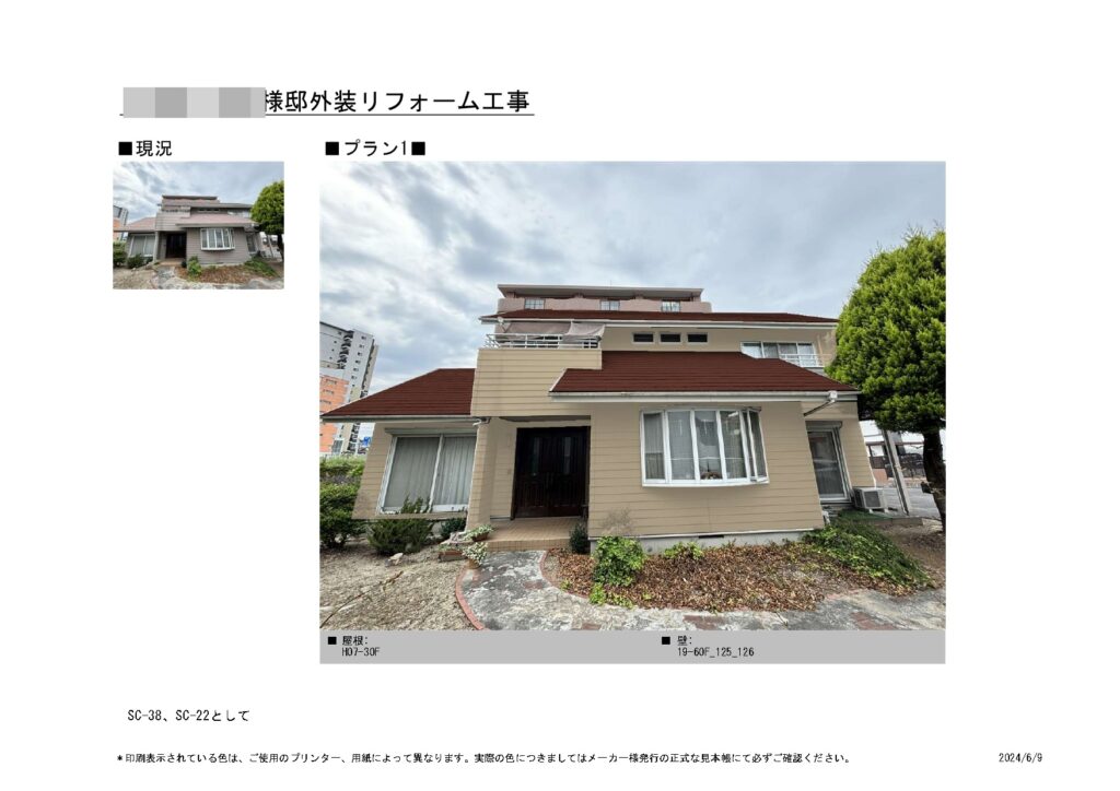 | 色番号 | メイン壁:19-50A 屋根 :SC-44(ニットコウ15-20B) |
