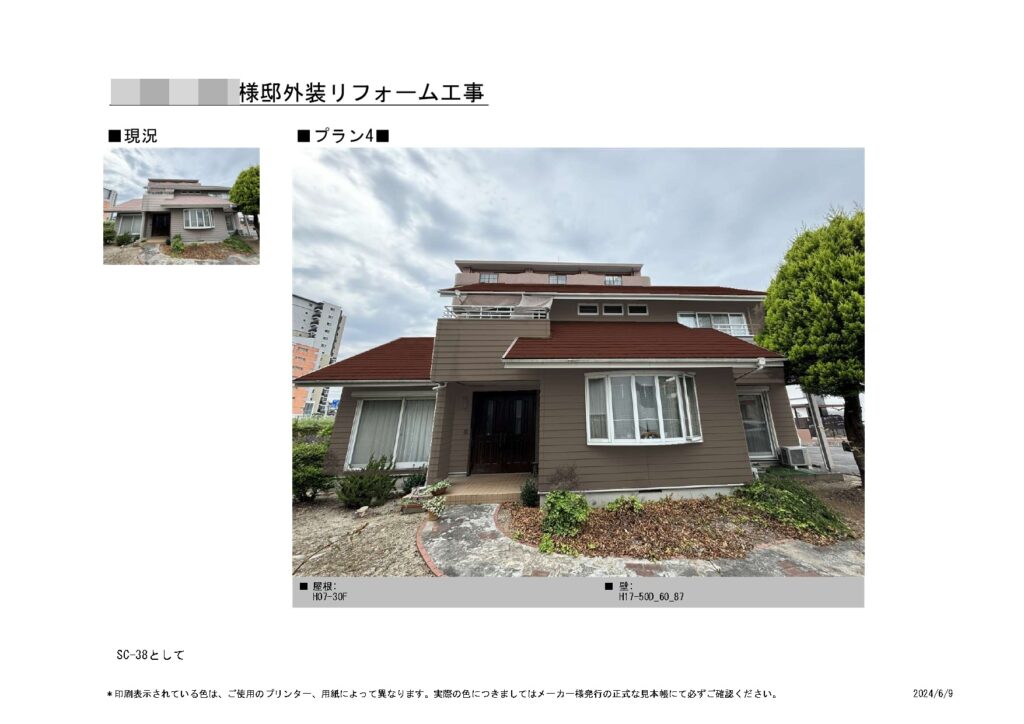 カラーシミュレーションは4パターン作成させていただきました。」