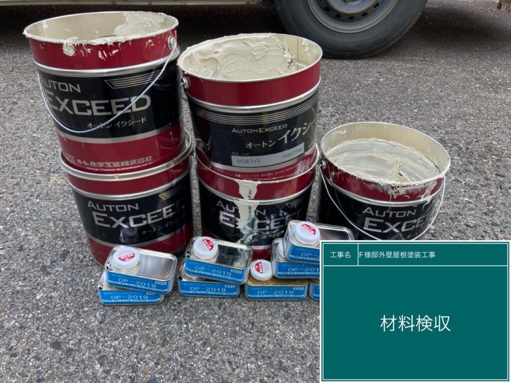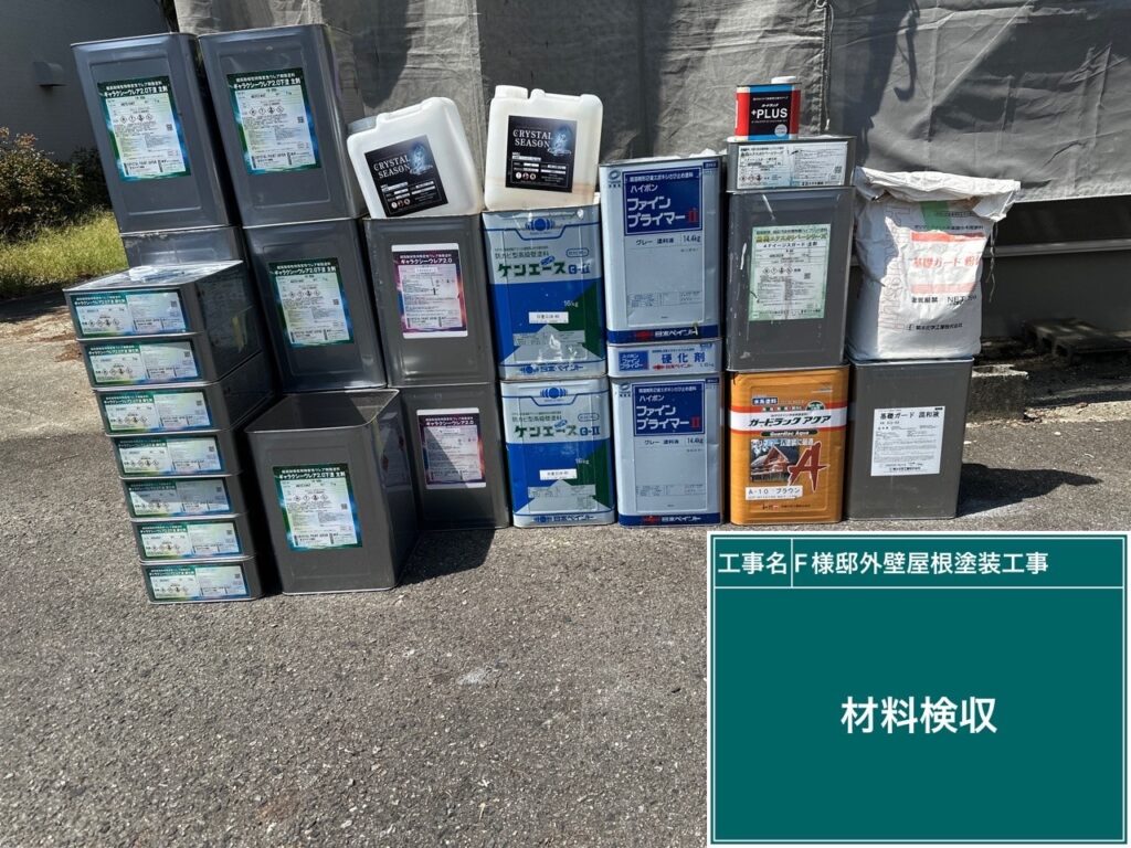 | 使用商材・建材 | 外壁 : ギャラクシーウレア2.0(1液型弱溶剤/超次元高耐久&耐震ポリウレア塗料/CPJ・~クリスタルペイントジャパン) 屋根 : 無機エクスカリバーMZ-R(2液型弱溶剤/バーテックス無機塗料/CPJ・~クリスタルペイントジャパン~) 付帯 : 4Fイージスガード(2液型弱溶剤/無機配合型4フッ化フッ素塗料/CPJ・~クリスタルペイントジャパン~) 目地&開口部 : 仕上げ : クリスタルシーズンtg(可視光応答型ハイブリッド光触媒プロテクトコーティング) |
