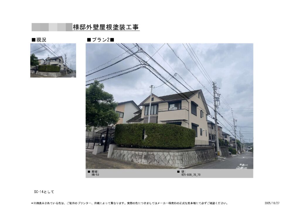 | 色番号 | 外壁:SC-14(25-80B) 屋根:N-50 |