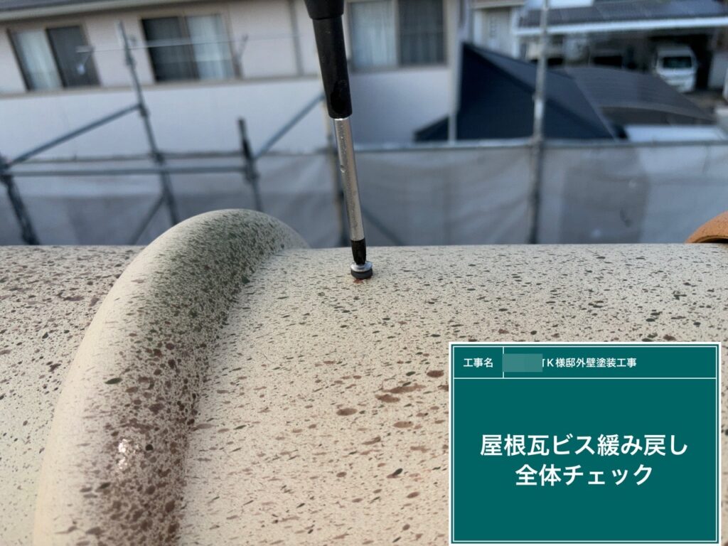 屋根瓦のビスの緩み戻しを行います。